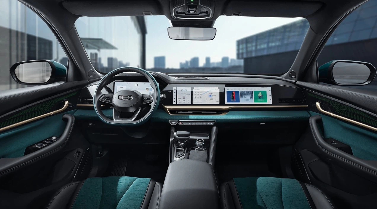 Bên trong Monjaro là khoang cabin được thiết kế tối ưu cho cả tài xế lẫn hành khách. Ghế ngồi bọc da Nappa cao cấp, chỉnh điện 12 hướng, đi kèm sưởi – làm mát ghế, cửa sổ trời toàn cảnh và hệ thống đèn viền 72 màu theo tâm trạng. Màn hình giải trí trung tâm 12.3 inch kết hợp màn hình cụm đồng hồ kỹ thuật số và hệ điều hành Geely Galaxy OS mang lại trải nghiệm tương tác mượt mà, thân thiện.