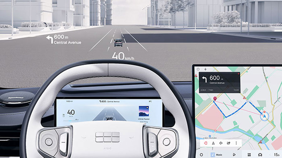 HUD hiển thị thông tin quan trọng như tốc độ, trạng thái hệ thống hỗ trợ lái ngay trên kính chắn gió, giúp tài xế tập trung tối đa vào đường đi mà không bị phân tâm.