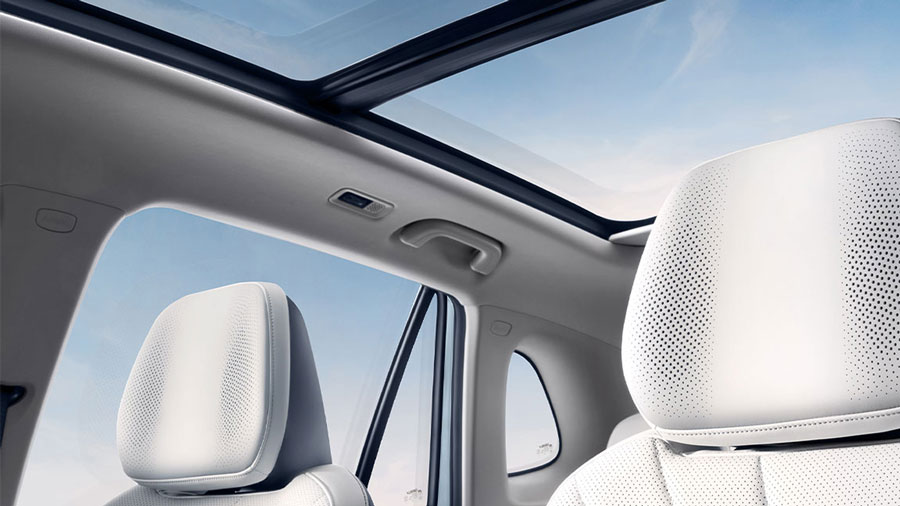 Cửa sổ trời toàn cảnh trượt điện với kính lọc 93% tia UV, tự động đóng khi trời mưa, giúp không gian xe thoáng đãng.