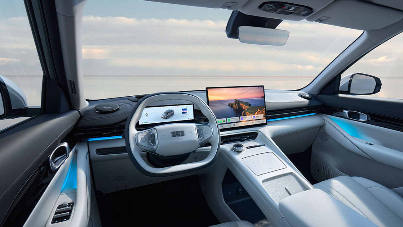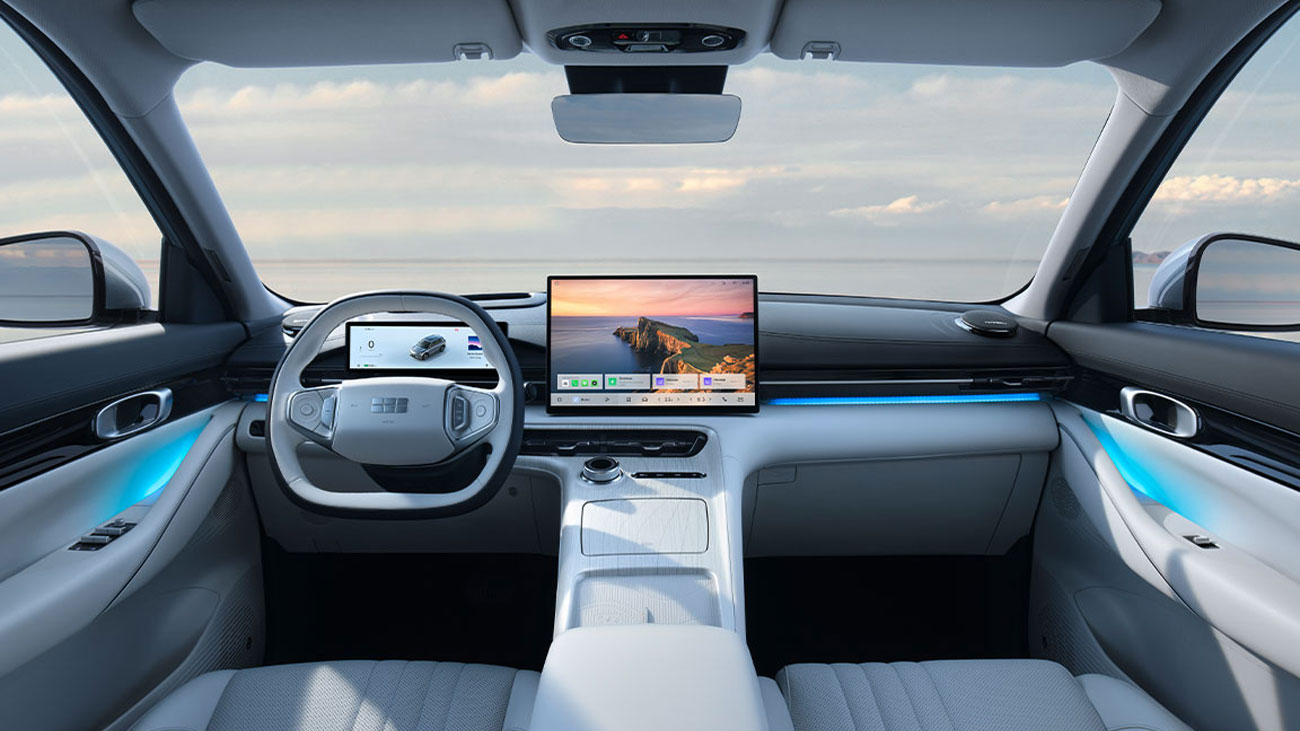 Màn hình trung tâm nổi lớn độ phân giải 2,5K, cửa gió điều hòa trải dài, tối ưu phân bổ không khí và thẩm mỹ hiện đại.