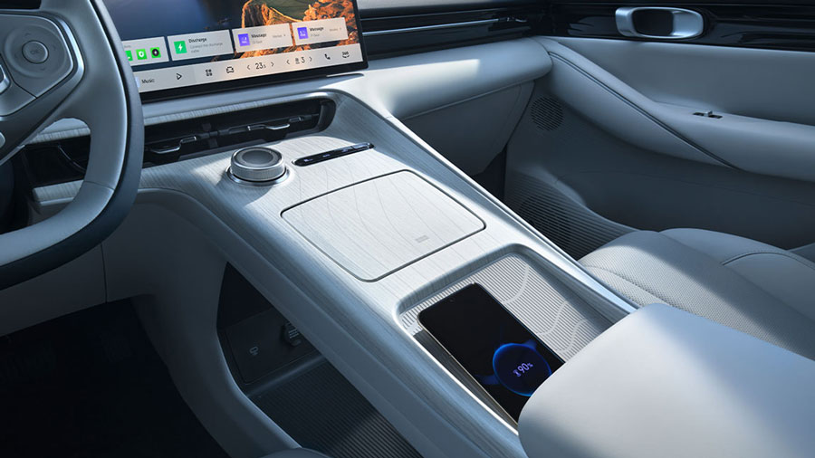 Hệ thống sạc không dây 15W hỗ trợ sạc nhanh điện thoại và cảnh báo nếu người dùng để quên điện thoại trên xe.