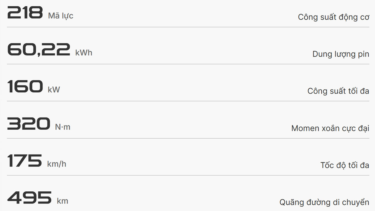 Sạc nhanh từ 30% lên 80% chỉ trong ~20 phút với sạc nhanh DC. Hệ thống điều hòa nhiệt độ pin tự động làm mát hoặc làm ấm, đảm bảo hiệu suất ổn định quanh năm.
